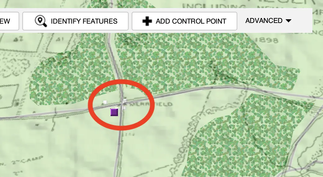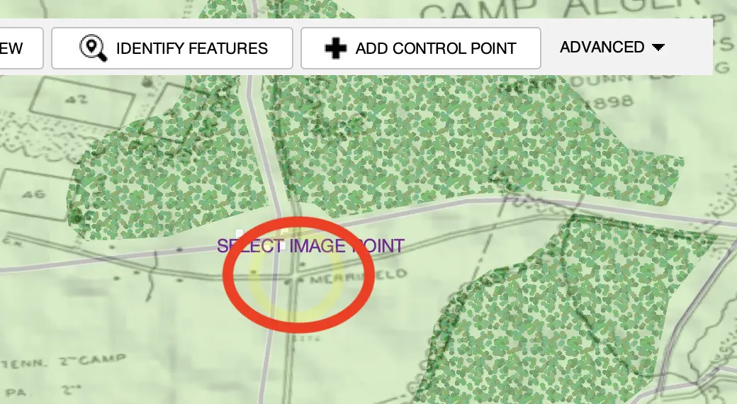 Then, specific features within a map can be more precisely aligned using Geographic Control Points (GCPs) to "warp" older maps to better align known locations. Running Reality uses a thin-plate spline warping algorithm.