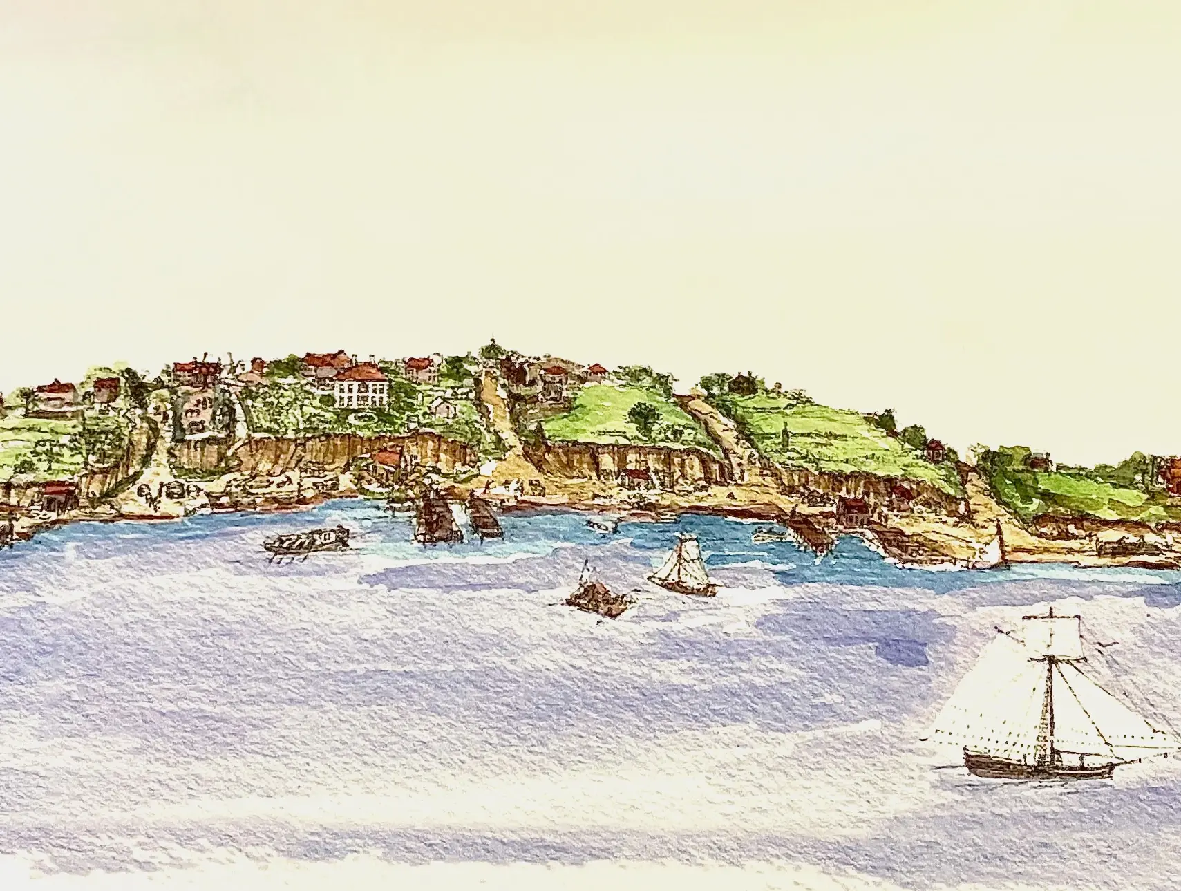 An artist's painting of the Alexandria waterfront that hangs in the Alexandria Archaeological Museum.