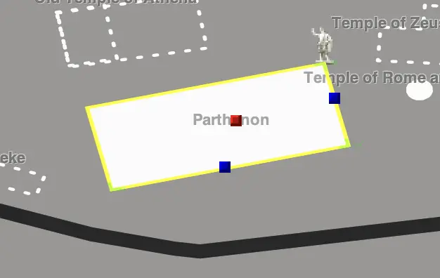 Editing a polygon footprint. Note the corners are color coded from red to green as they
