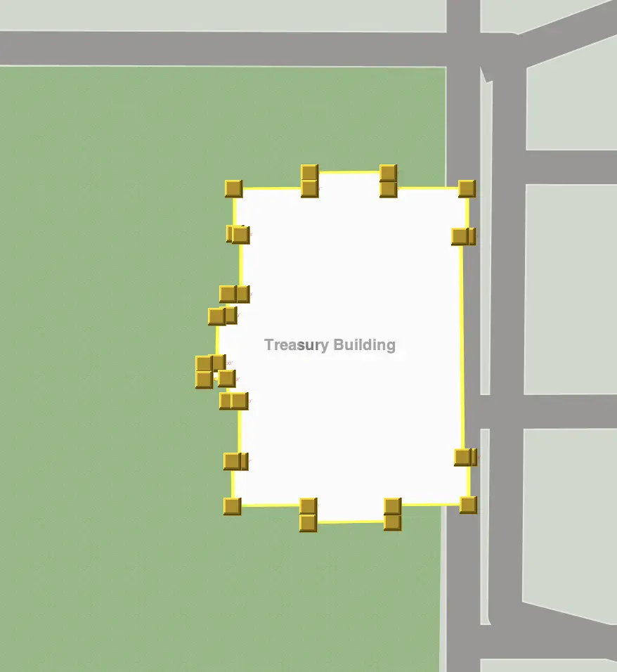 The basic structure data for a building is a 2D footprint. These can be comprised of multiple elements such as blocks, cylinders, polygons, etc. For the simplest buildings, consider using a simple block. If you have more detail on the footprint, then use a polygon to capture the details. Add new elements from the toolbar menu. You may also import a polygon from a data source, including OpenStreetMap, using the same AI Machine Learning model mentioned above.
