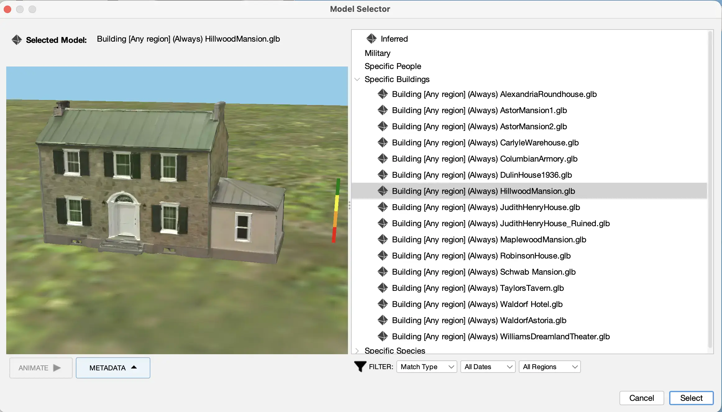 You can see the prototype system for selecting building models if you add a model to the Pattern3D.