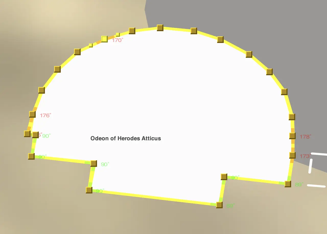 NOTE Angles may not appear on screen to be exactly 90 degrees even when they are. This is due to the app's map projection being Equirectangular and not Mercator. Mercator maps preserve right angles through rotation, but other projections do not. Use the color coded guides to get the angles square. The app will move to a Mercator projection as part of its transition to a 3D map.